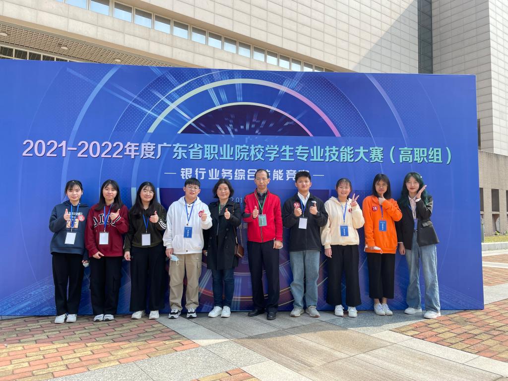 2022年1月8日,由广东省教育厅主办的2021-2022年度广东省职业院校学生专业技能大赛银行业务综合技能赛项在广州番禺职业技术学院举行,共有来自全省各高职院校的79支队伍、316名学生参加。我校由财贸学院郑建红、黄志良、聂瑞芳、柯畅四位老师担任指导老师带队参赛,由财贸学院财管201班杨明友、郑文莹、吴梦婷、曹佳琳、刘凯,财管202班劳湘雯、孙金蕊、汤文倩等8位同学组成的2支队伍参加本次大赛。经过激烈角逐,双双荣获大赛三等奖。