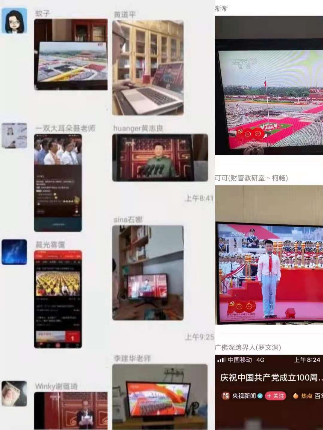 财会党支部组织教师党员收看庆祝大会电视直播,学习习近平主席重要讲话精神,共庆中国共产党百年华诞。