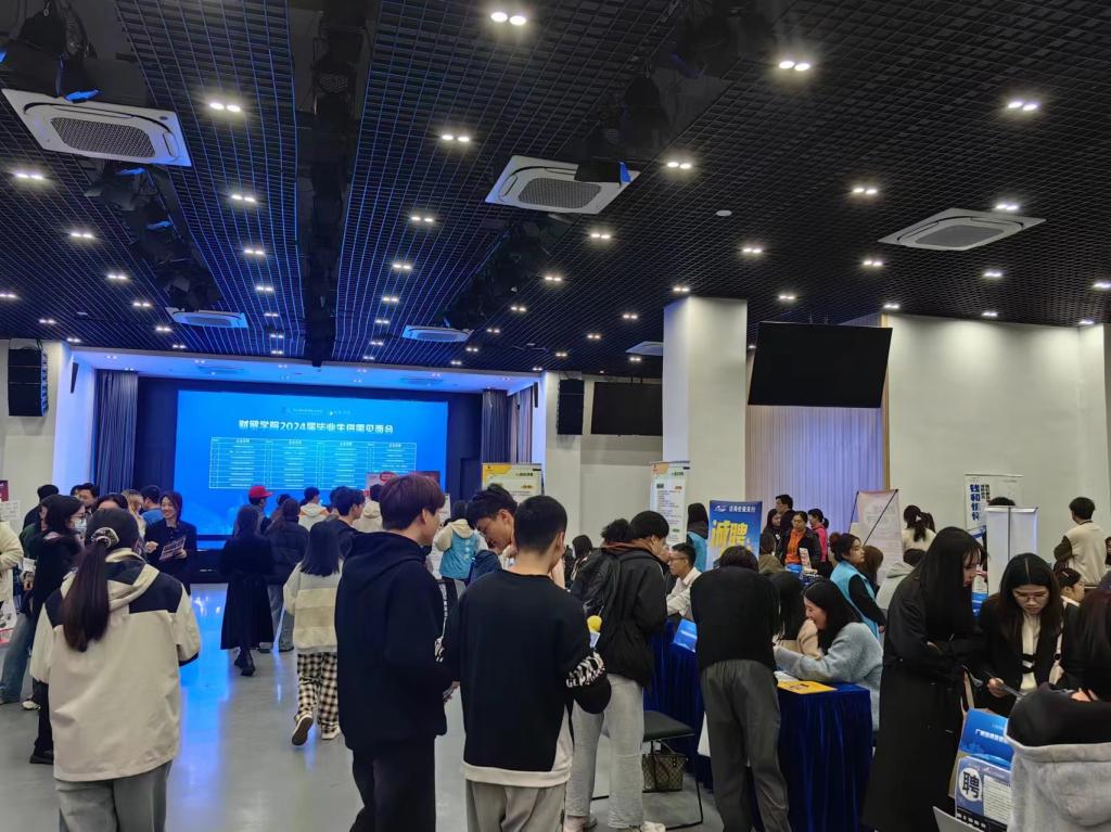 校长卢坤建、副校长官春平莅临现场指导工作,财贸学院领导班子、教研室主任、专业带头人和毕业班辅导员全体参加本次招聘会,为学生高质量就业、可持续发展贡献力量。(图文/陈莹 赖炜祎)