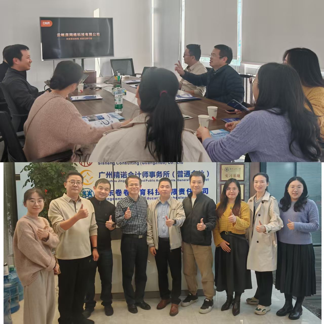 2025年12月16日下午,财贸学院会计小分队前往广州精诺会计师事务所及云帐房网络科技有限公司广东公司调研。此次调研是财贸学院本科办学大调研、大讨论工作关键环节,聚焦职业本科会计专业人才培养模式、课程体系及实践教学体系等核心问题。