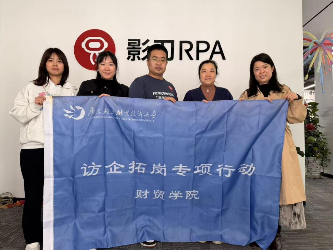 为精准把握AI技术对国际贸易行业就业的影响,优化专业人才培养方案,2025年12月26日,广东轻工职业技术大学财贸学院国贸教研室主任张艳婷与骨干教师黄金穗、陈浩思老师赴影刀RPA企业开展专题调研。