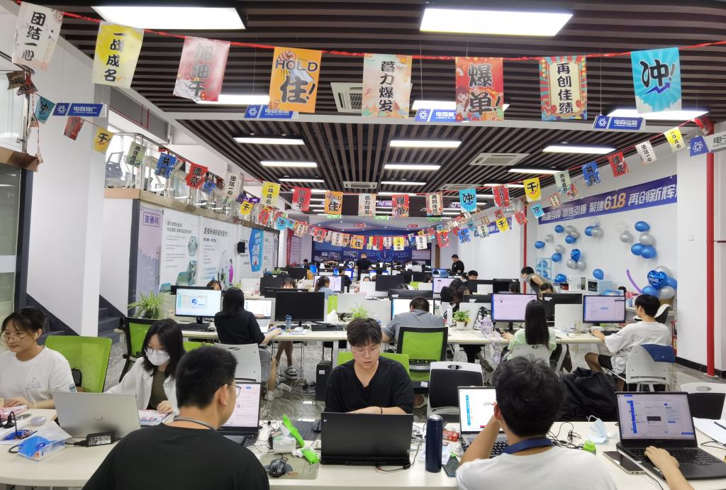 真实的职场办公环境、同学们自主设计的活动文化衫、校企混编教师团队指导、营销冲刺和业绩比拼,无不渲染了618电商嘉年华活动紧张、热烈、活泼、进取的气氛,学生也充分感受到了财贸学院“果行育德,经世致用”的精神内涵。