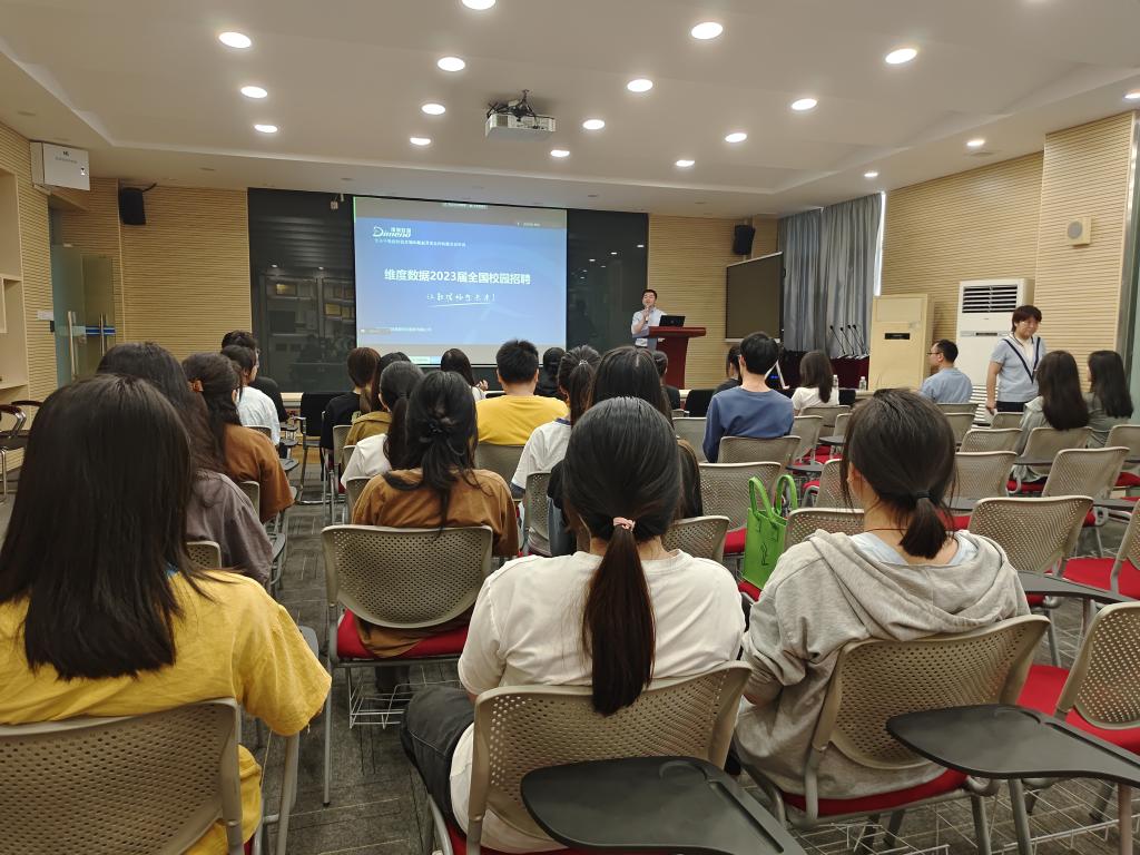 2023年4月15日,合作企业深圳市维度统计咨询股份有限公司在我校财贸学院举行了校园招聘现场宣讲会,会议以线上线下同步形式召开,吸引了经信、商数、会计、财管、营销等专业的学生前来参加,宣讲会后,企业人力资源部经理还就学生们提出的企业前景、行业发展、薪资待遇、职业生涯等问题进行了详细的交流和解答。