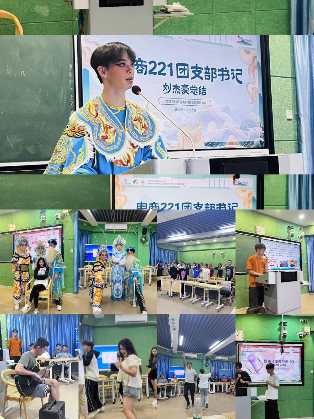 电商221支部在打破传统团日模式的基础上,采用新模式、新概念、新流程。现场融合朗诵、才艺、合唱、科普、学习通、非遗文化等。