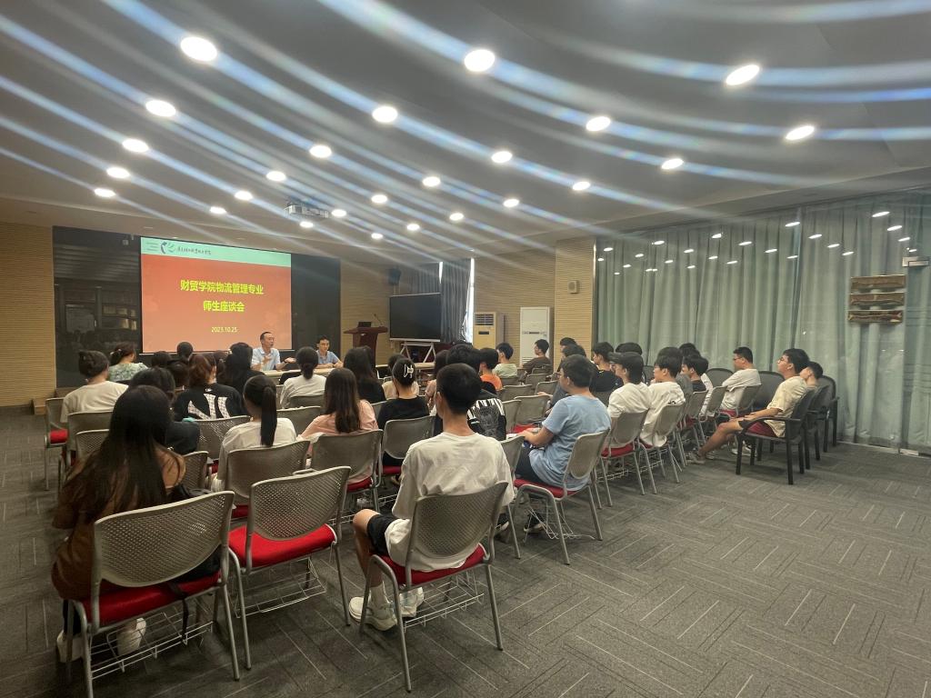 2023年10月15日下午,物流管理教研室组织了物流本科班师生座谈会。本次座谈会旨在增进师生之间的相互了解和信任,加强协作,改进教学,提升教育质量。物流管理教研室主任史智博、专业带头人孙旭教授及物流本221全体同学参加了座谈会。