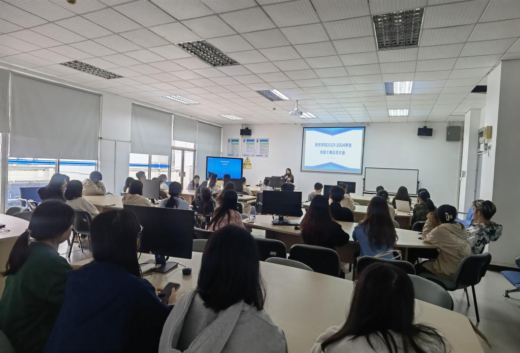 2023年11月14日,为了提升学生备赛集训的积极性、充分发挥“以赛促教、以赛促学”的积极作用,鼓励学生提升专业技能以取得更好的竞赛成绩,财贸学院在第二实训楼B403组织召开了2023-2024年度学生技能大赛动员大会,在会上分享了历年的学生技能大赛比赛成绩,解读了学校学生竞赛管理政策、学生奖励机制,进一步鼓舞参赛学生士气,鼓励大家全身心投入比赛,赛出佳绩!(图/文:甘赢锋)