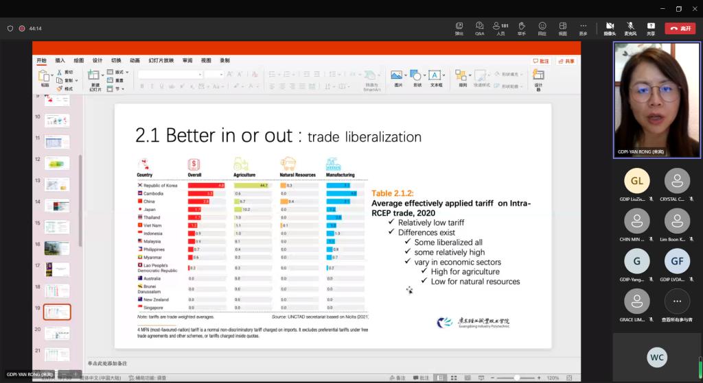 严蓉老师深入浅出地解读了RCEP协定对马印两国企业的意义,引发了参与师生的浓厚兴趣。他们热烈地提问和交流,共同探讨RCEP对马印两国跨境电子商务行业的影响。讲座气氛友好、互动热烈,邀请方在会后给予了高度评价。